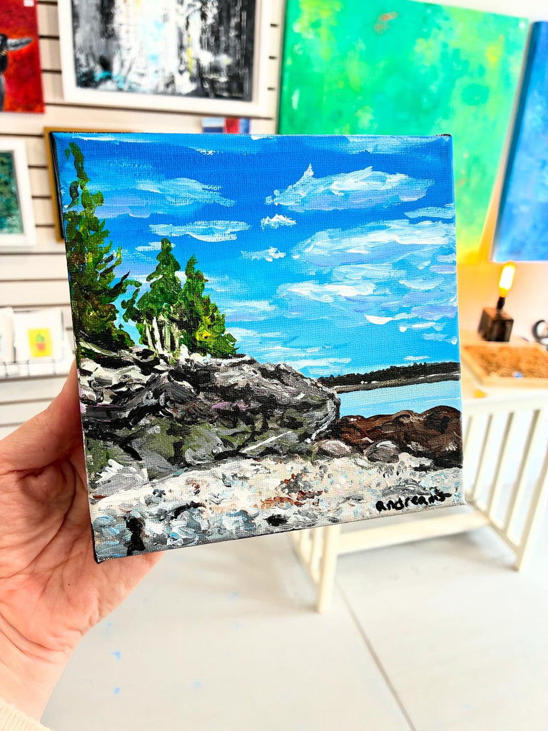 Pebbles and Sky Painting by Andrea Mulder-Slater