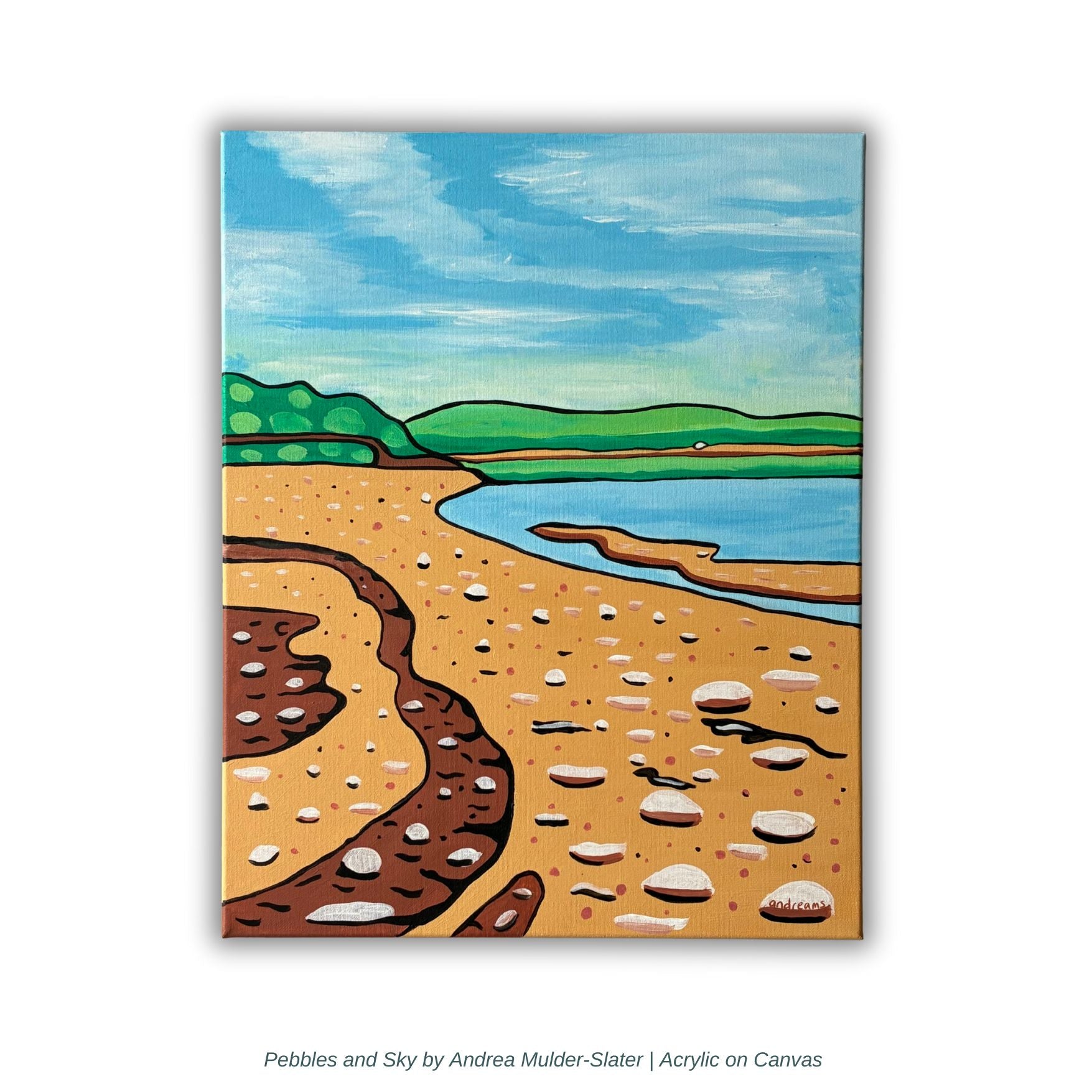 Pebbles and Sky Painting by Andrea Mulder-Slater